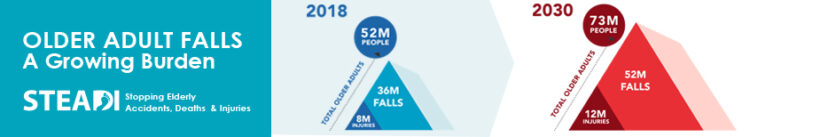 In the United States, about one in four adults (28%) age 65 and older, report falling each year. This results in about 36 million falls each year. While not all falls result in an injury, about 37% of those who fall reported an injury that required medical treatment or restricted their activity for at least one day, resulting in an estimated 8 million fall injuries.1